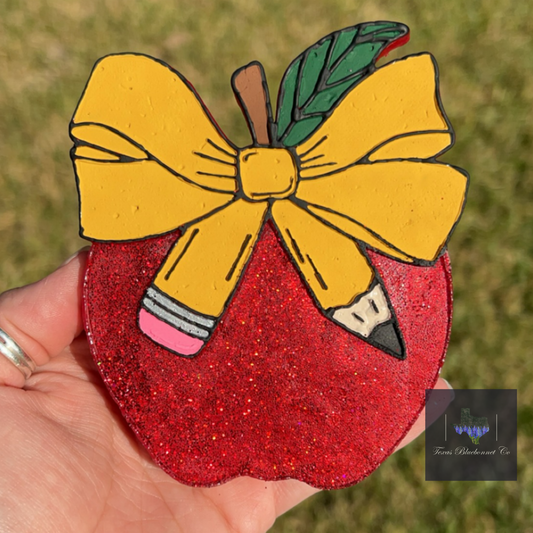 TEACHER APPLE W/ PENCIL BOW