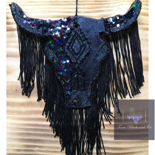 BULL SKULL BLACK W/ HOT PINK FRINGE
